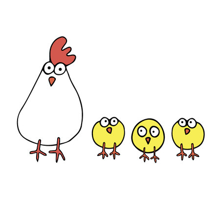 かわいい鶏とひよこ1の無料イラスト 商用フリー オイデ43